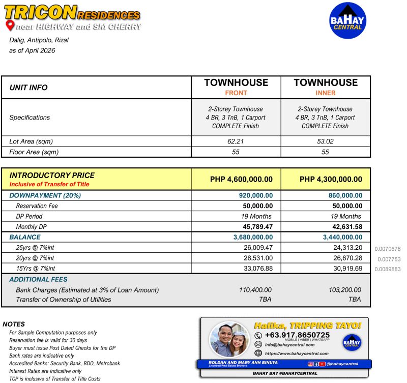 Budget-Friendly 2BR Townhouse Near SM Cherry Antipolo | TRICON RESIDENCES